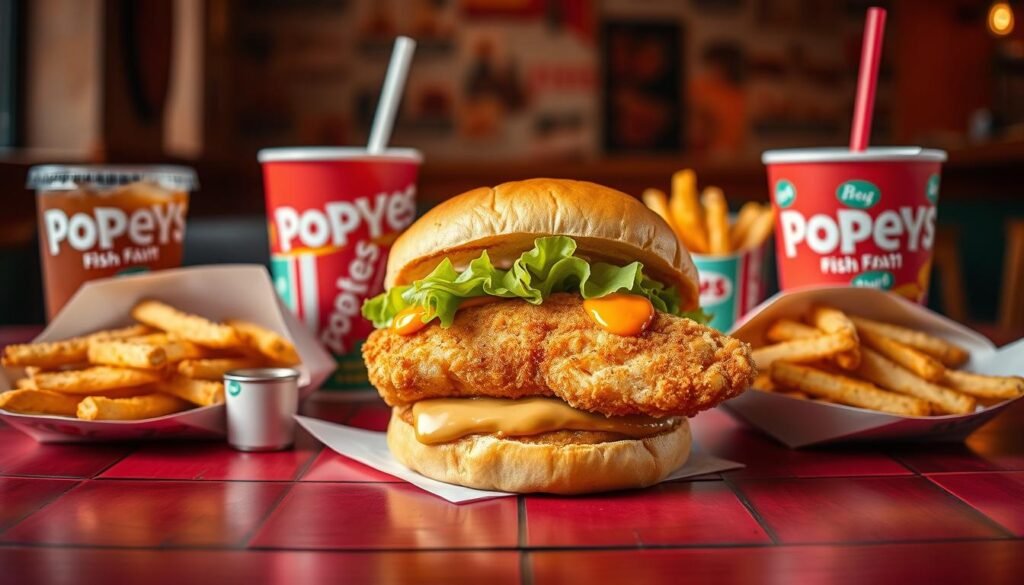 Their meal deals include fish sandwiches, sides, and drinks. This lets customers try different menu items at a low cost. Below, you’ll find some of the newest meal deals. These limited-time offers make dining at Popeyes even better.
